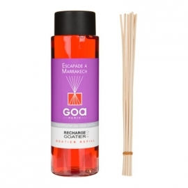 Recharge Pour Goatier : Escapade à Marrakech † Un Système Simple, Une Rémanance Exceptionnelle. † Elègant et décoratif, le goatier est un diffuseur de senteurs pour la maison. Verser le parfum dans le goatier, déposez les tiges de rotin ou la fleur et la diffusion du parfum se fait par capillarité. † Le goatier fonctionne sans source d'énergie.† Le goatier n'utilise ni chaleur, ni combustion.† La recharge de Goatier est vendu avec les tiges de rotin. 260 ML