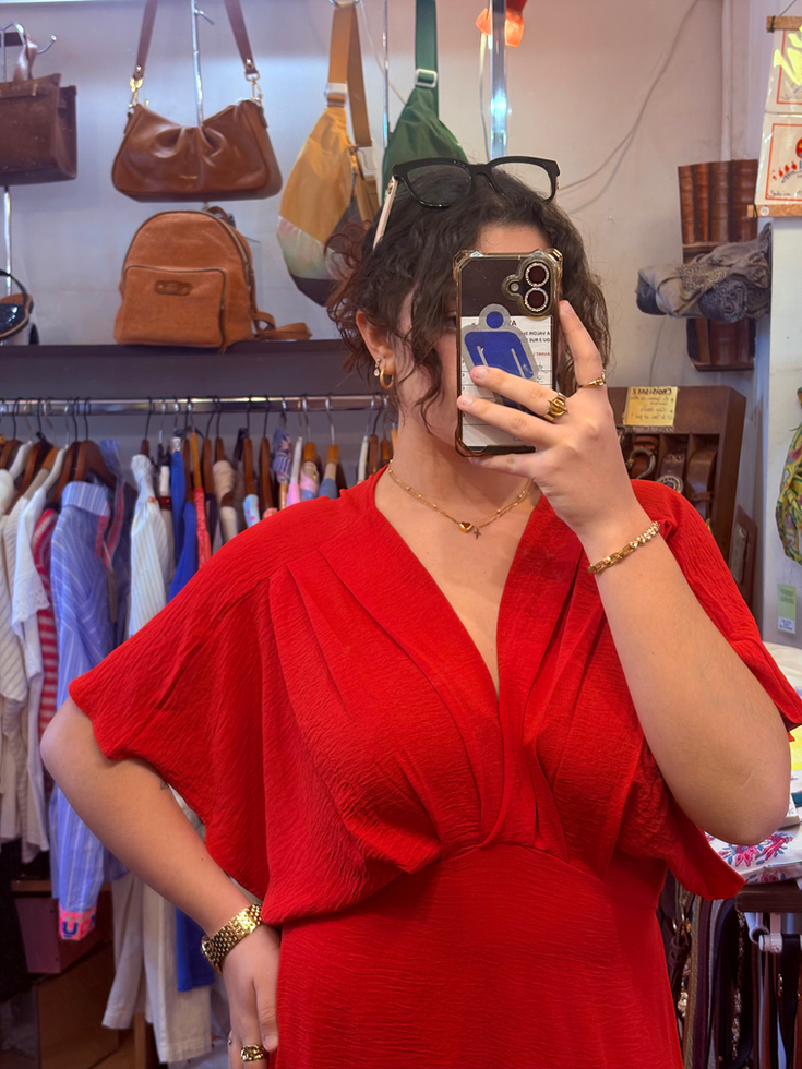 Succombez au charme de La Robe Magique Rouge, une robe longue à l’allure élégante, fluide et captivante, idéale pour sublimer votre silhouette avec raffinement. Grâce à sa coupe empire flatteuse, son décolleté en V délicat et ses manches légères et aériennes, cette robe offre une allure féminine et sophistiquée en toute simplicité.