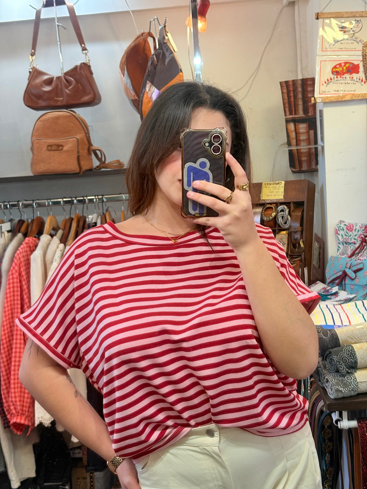 T-shirt marinière rose et rouge – Élégance intemporelle et style tendance