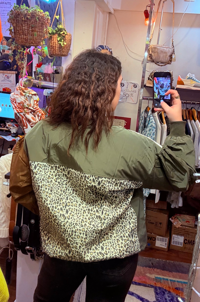 Affirme ton style avec cette veste oversize léopard patchwork, une pièce forte au design audacieux. Son mélange d’imprimé animal et de panneaux contrastés crée un effet graphique ultra tendance, inspiré du streetwear vintage.
